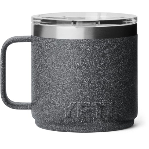 - When the lid is removed, the bottom grooves on the stackable base allow you to nest your YETI Rambler 14 oz. mugs to save space (second mug not included)