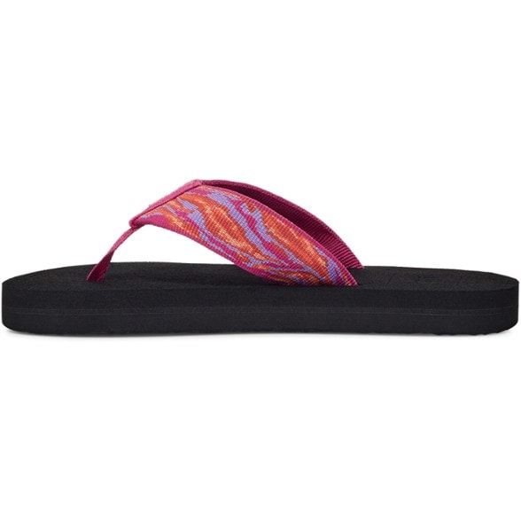 Foot-forming comfort defines this generation of the Teva Mush flip-flops. The straps feature a kaleidoscope of designs. Recycled polyester webbing stands up to abuse.