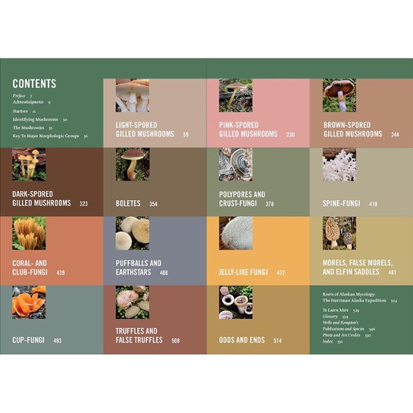 Learn about the mushrooms of the Last Frontier in this field guide. It features helpful identification keys and photographs. And it has a clear, color-coded layout.