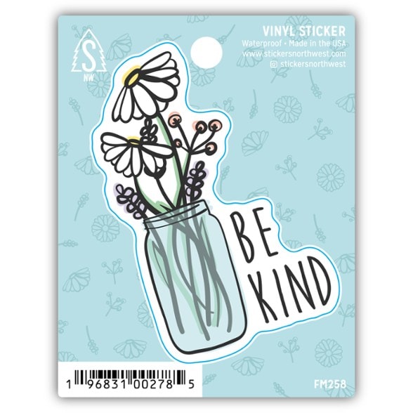 Remind yourself and everyone around you to be kind with this high-quality Stickers Northwest sticker. Stick it to your water bottle, cooler, laptop or car window.