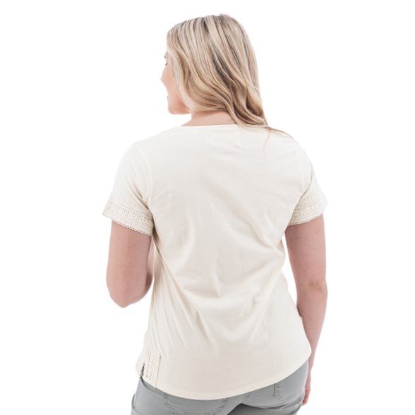 Upgrade your tee selection. This Aventura top is trimmed with tonal crochet. Its jersey knit blends organic cotton with recycled polyester.
