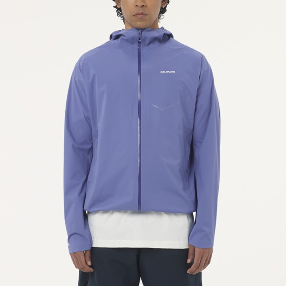 Grab and go. This men's Salomon waterproof jacket is built for running in the rain and designed with subtle, smart features. The versatile look lets you wear it anywhere.