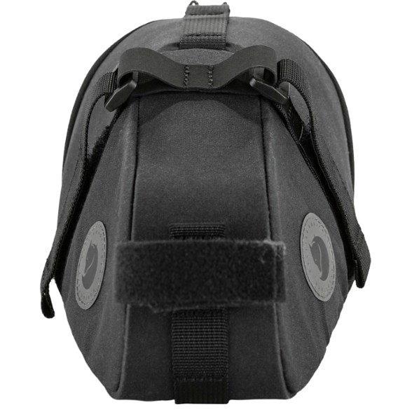 Strap this 2-liter Fjallraven bag under your saddle and forget about stuffing your pockets. A zippered "postbox"-style opening offers a good view of contents. Two mesh sleeves inside organize gear.