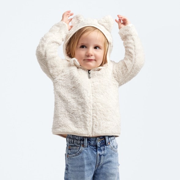 Great for cool nights and crisp days, this hoodie from The North Face will keep your little tyke warm. Bear ears on the hood make it fun to wear. Fold-over mitts at the cuffs keep their hands cozy.