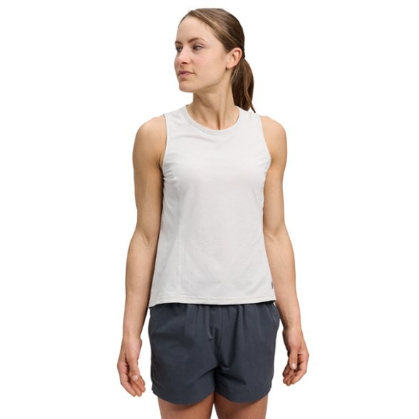 Find your flow in this lightweight Black Diamond tank top. It works well for long trail days, thanks to backpack-compatible straps. Flatlock seams prevent chafing, and hem side vents add airflow.