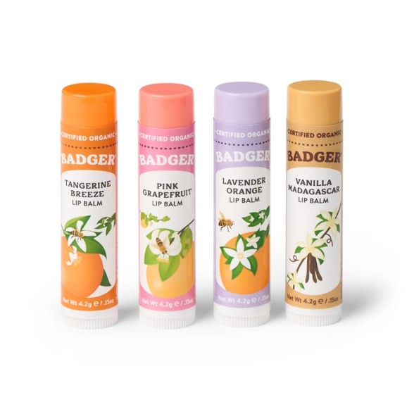 - Set includes four 0.15 oz. lip balm sticks: 1 Tangerine Breeze, 1 Lavender Orange, 1 Vanilla Madagascar and 1 Pink Grapefruit