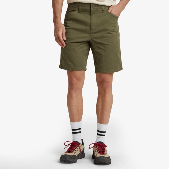 Easy-wear, twill travel shorts combine style and practicality. Made from a blend of organic cotton and spandex, these shorts are breathable and comfortable. They're made for daily wear all summer.