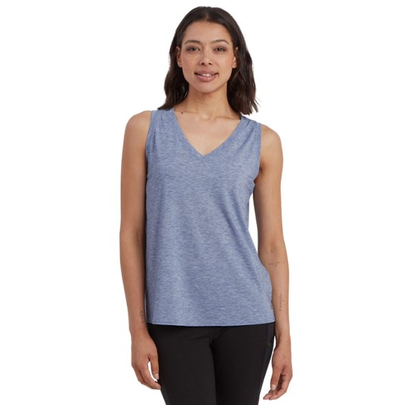 - The Asha V-Neck Tank Top is a versatile sleeveless tee, rich with sustainable fabric technology, for all day comfort and performance