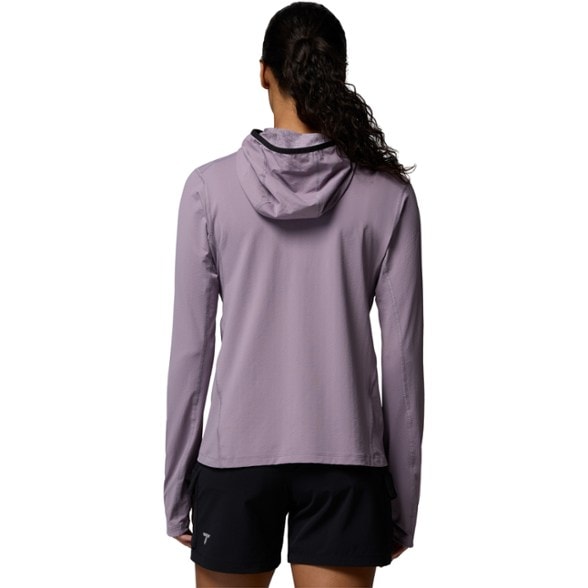 Push through fast-paced days with this ultralight Columbia hoodie. It blocks UV rays, wicks moisture and provides cooling. The hood and thumbholes offer full coverage.