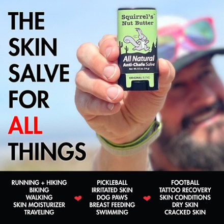 Protect areas of skin prone to chafing and blisters. This Squirrel's Nut Butter anti-chafe salve creates a lasting barrier to prevent rubbing and irritation. Beeswax helps keep your skin moisturized.