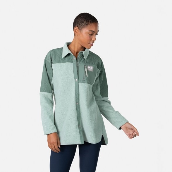 Great for lounging, this Kari Traa shirt jacket will be your go-to fleece for chilly weather. Nylon quilting on the shoulders adds warmth. The boxy, loose fit is cozy and comfortable.