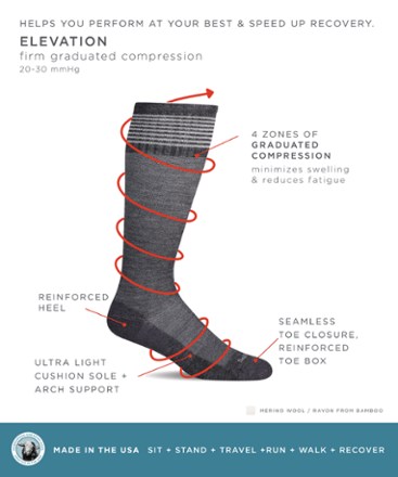 The wool blend of these Sockwell knee-high socks enhances fit and comfort. Their firm graduated compression is great for long periods of sitting, standing and flying.