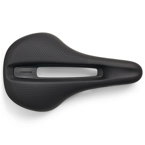 With its shorter profile, this Trek saddle offers targeted support for all genders. The full central cutout eliminates pressure. Wing Flex adapts to your inner-leg movement and pelvic rotation.