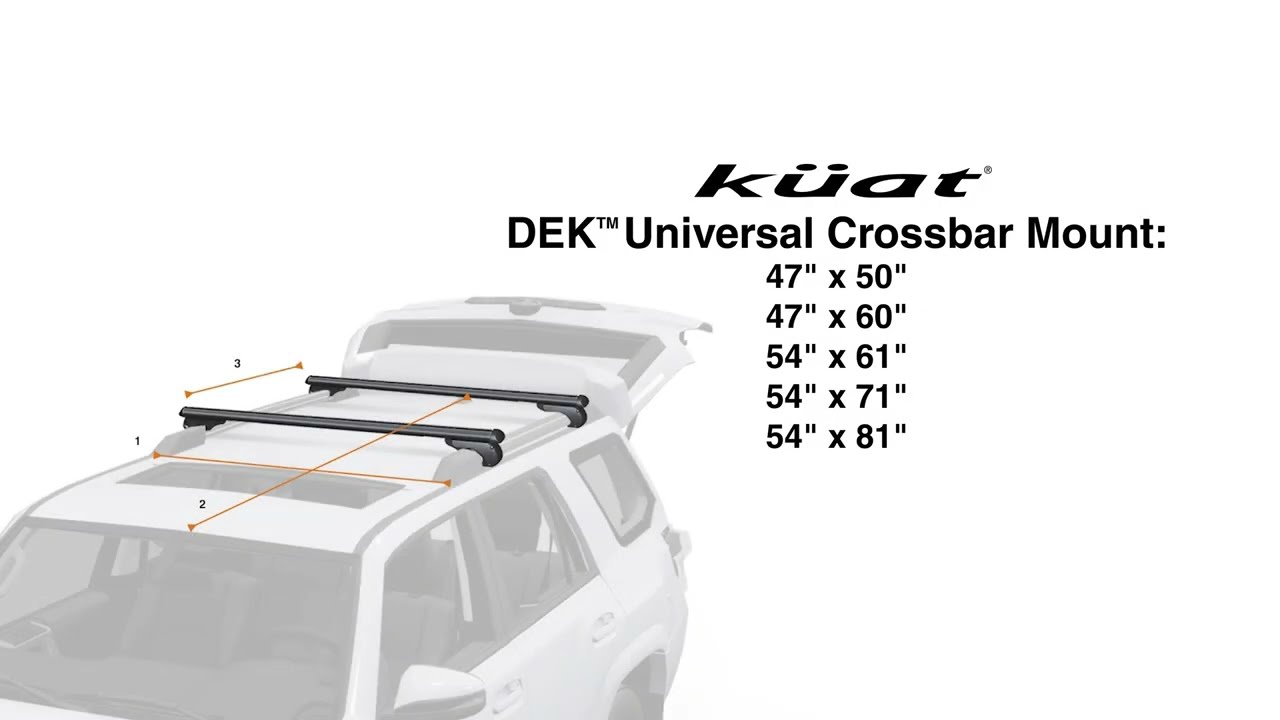 - Existing crossbars are required for mounting this version of the DEK; compatible with most vehicle crossbars
