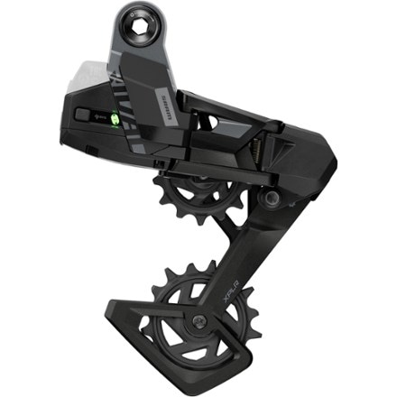Neither mud nor loose rocks can knock this SRAM rear derailleur out of adjustment. It pairs smooth, strong chain management with wireless AXS shifting for a resilient and effortless ride.