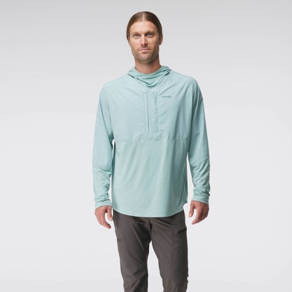 Layer this NRS hoodie under waders or pair it with shorts to beat the sun and heat. The fabric blend wicks moistures and prevent odors. It also provides UPF 50+ sun protection.