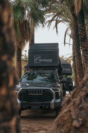 Set up this Intrepid Camp Gear 3-person rooftop tent in 60 seconds at your campsite. The wedge design has a hinged roof for plenty of space. The 7 in. shell is made of ultralight honeycomb aluminum.